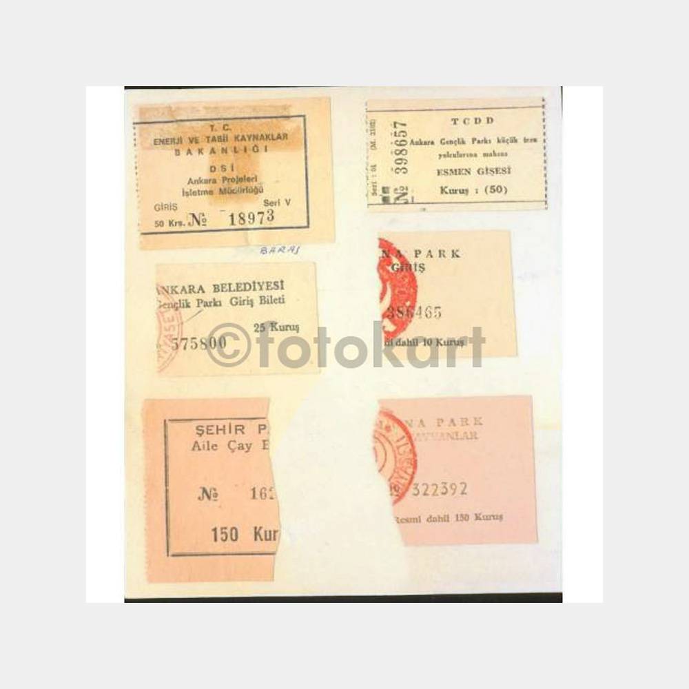 Saman bir kağıda yapışmış durumda altı adet nadir bilet.