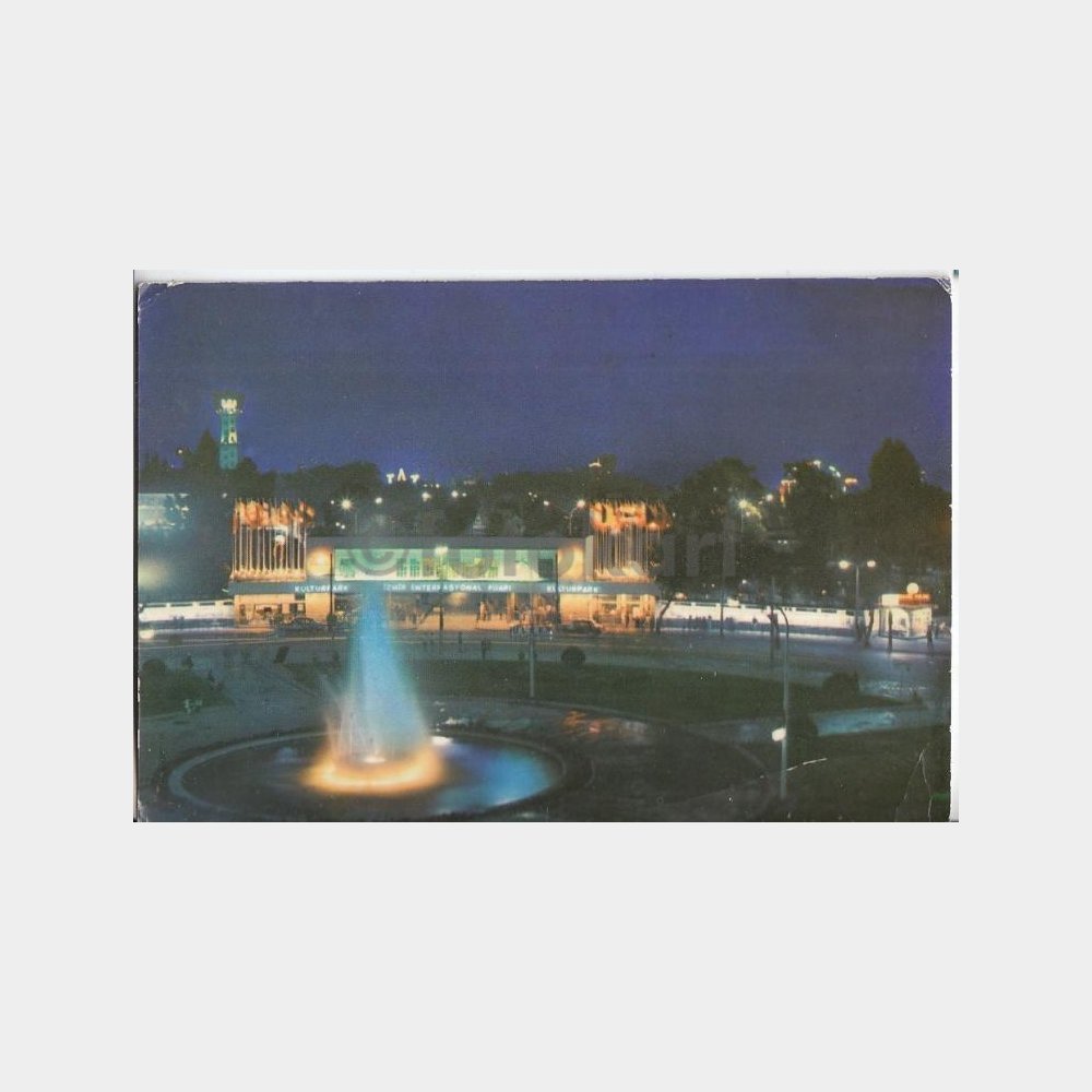 1970 İzmir Fuarı Dokuz Eylül Kapısı Gece Görünüşü Kartpostal