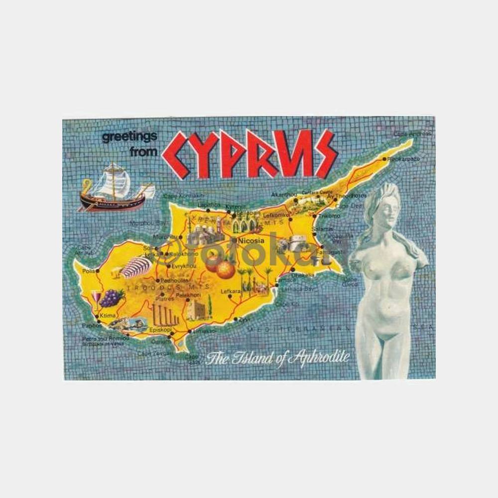 1970 Kıbrıs Harita Konulu Turistik Kartpostal