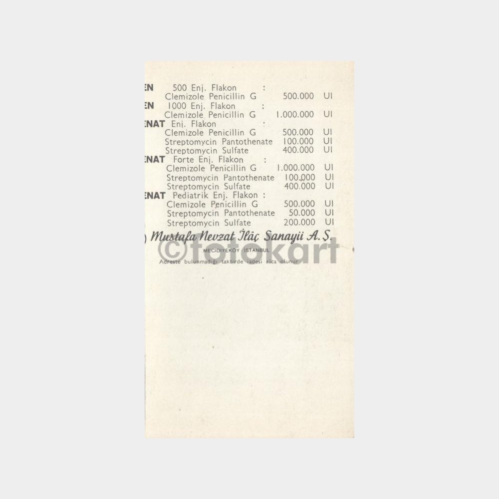 1970 Mustafa Nevzat İlaç Tanıtım Kartı