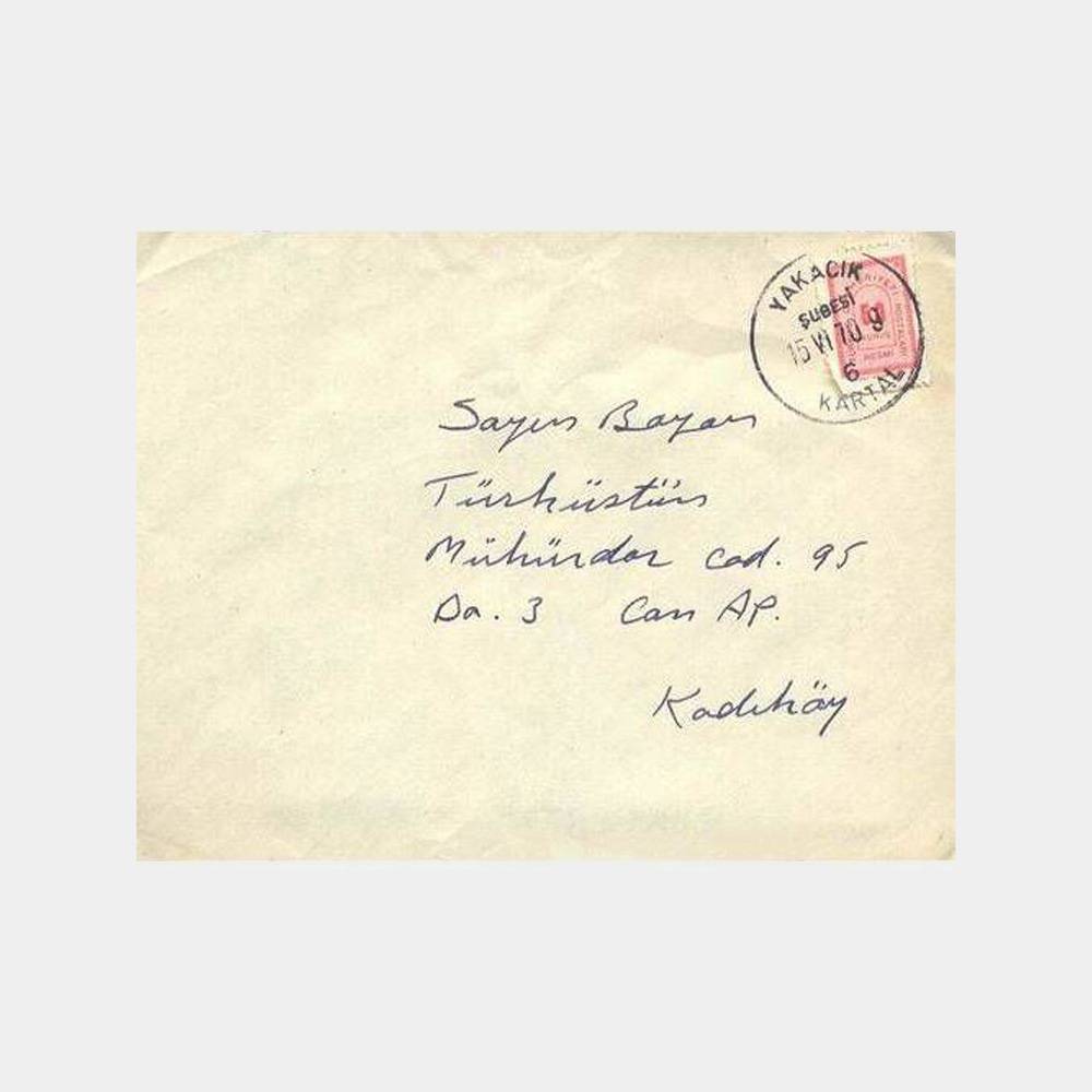 1970 Yakacık Damgalı Postadan Geçmiş Zarf