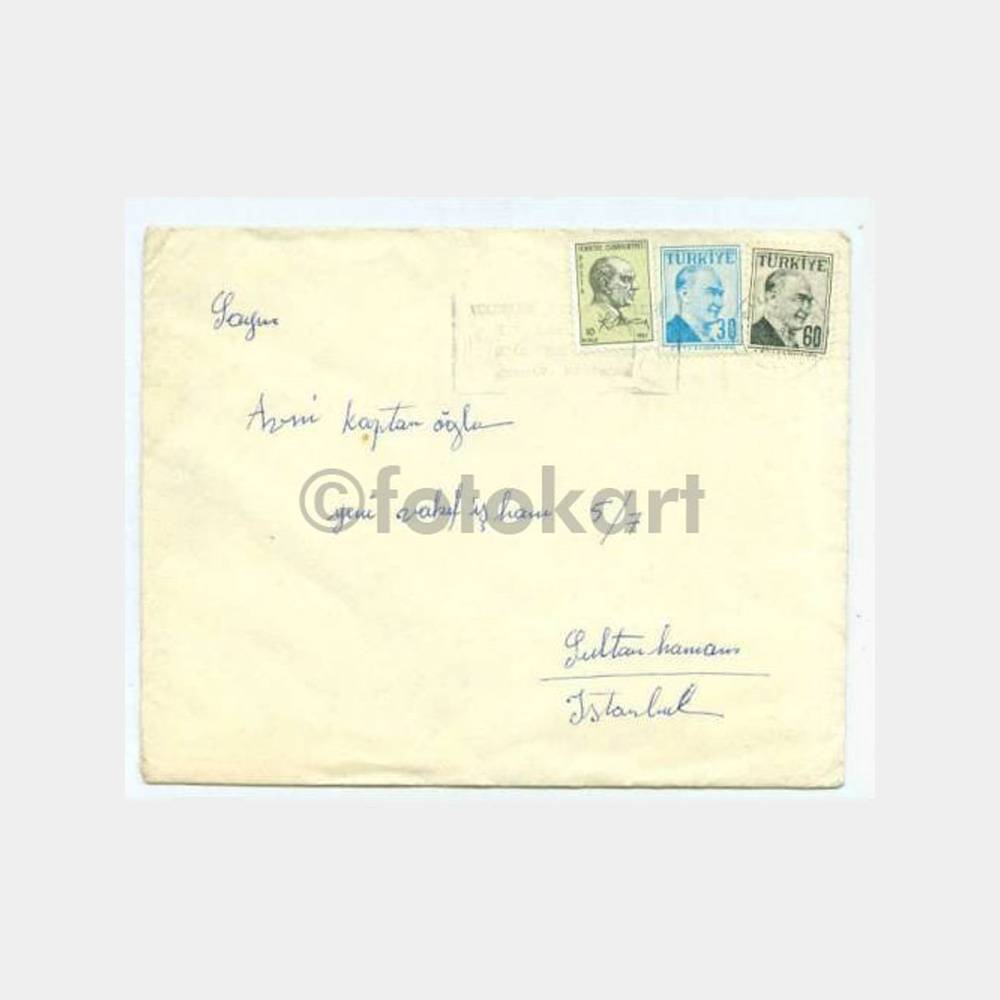 Üzerinde Atatürk pulları yapışık içinde mektubu olan zarf