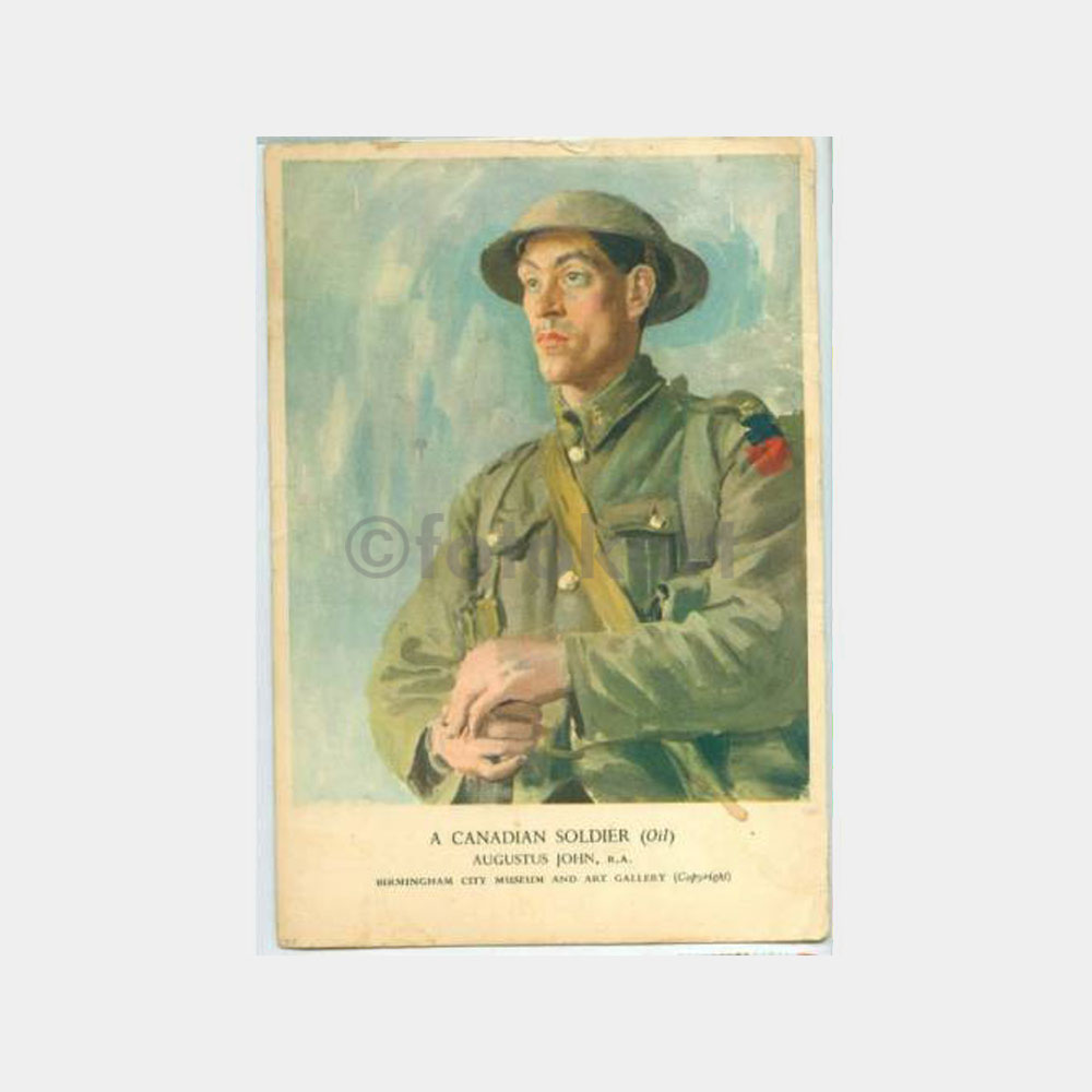 Arkası abut ailesi hitaben yazılı kartpostal üzerinde kanada askeri konulu, İngiltere birmigham damgası var
