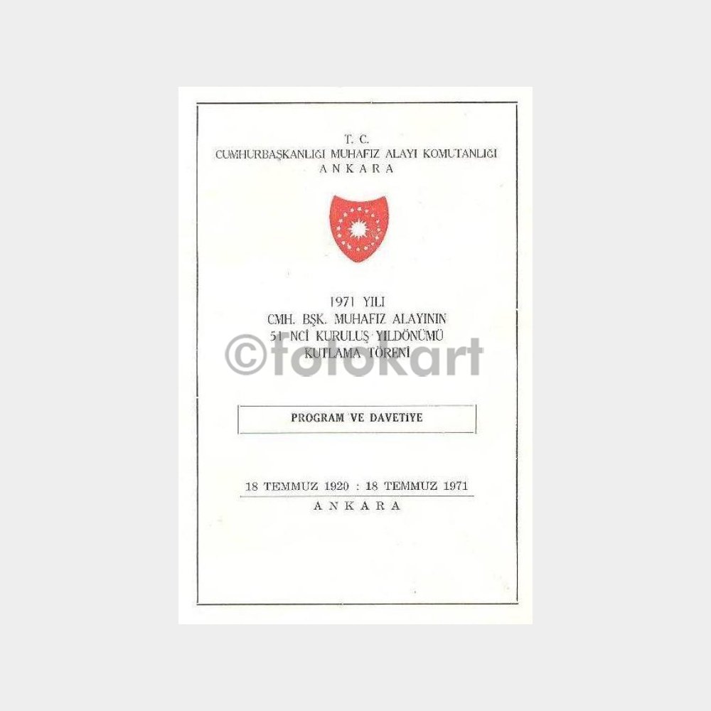 Cumhurbaşkanlığı Muhafız Alayı Komutanlığı-Ankara 51.yıl kuruluş yıldönümü program ve davetiyesi-kitapçık şeklinde Kurmay Albay Yılmaz Tokatlı.