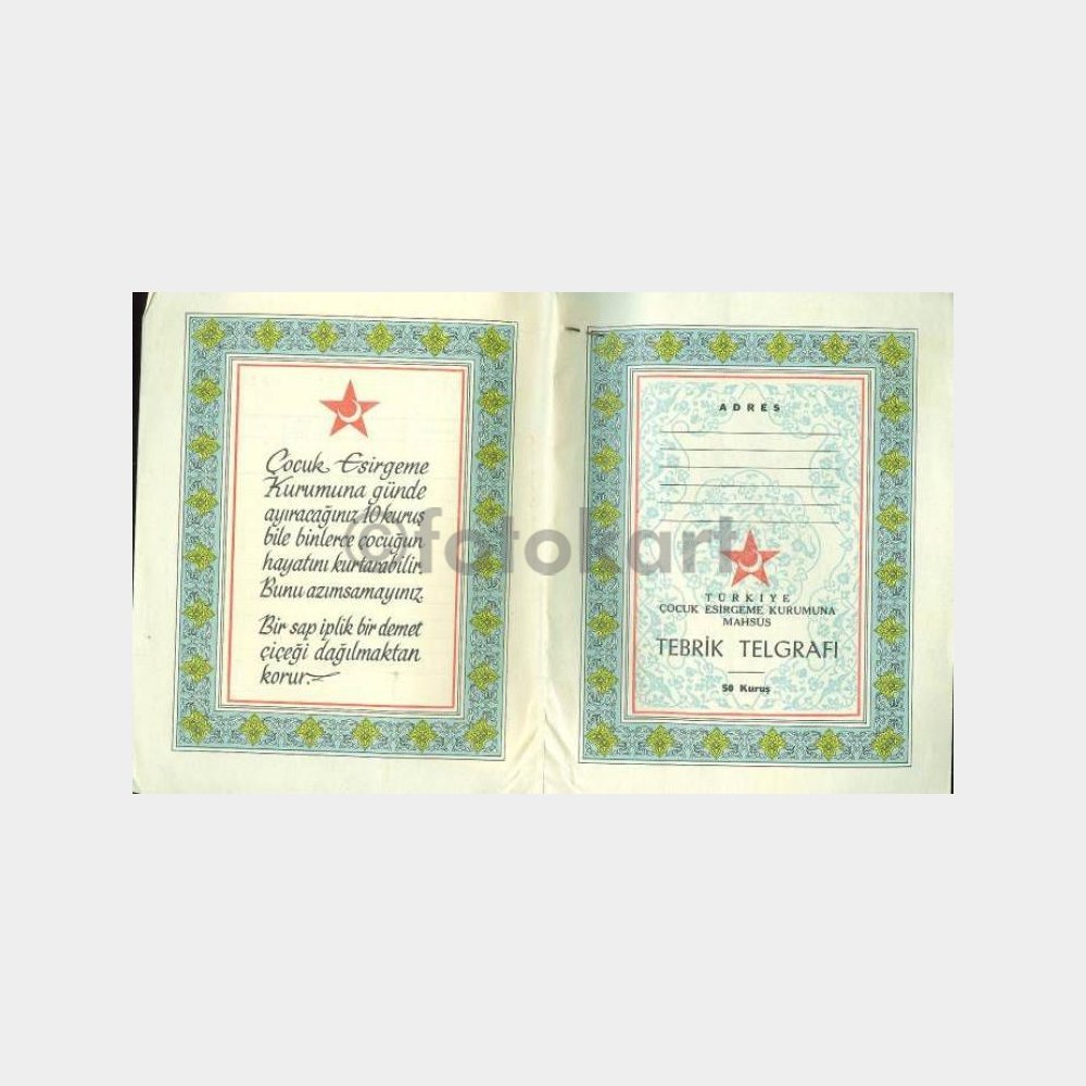 İçinde Çocuk Esirgeme Kurumu mahsus tebrik kağıdı var.