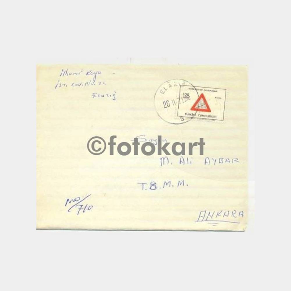 Elazığ\’dan 26. 11. 1971 tarihinde Ankara T. B. Meclise T. İşçi partisi başkanı Mehmet Ali Aybar’a gönderilmiş mektup. Yeni bir parti kurulma çalışmaları temennisi,