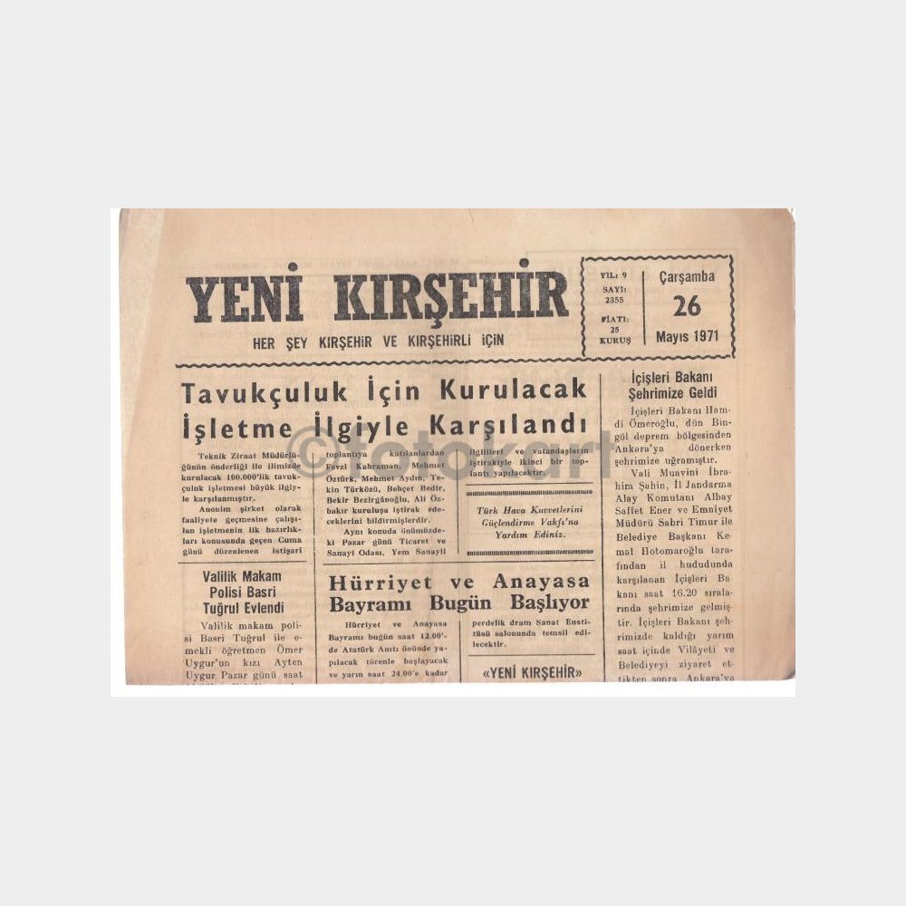 “1971 Yeni Kırşehir Gazetesi (26 Mayıs)” için yorum yapan ilk kişi siz olun