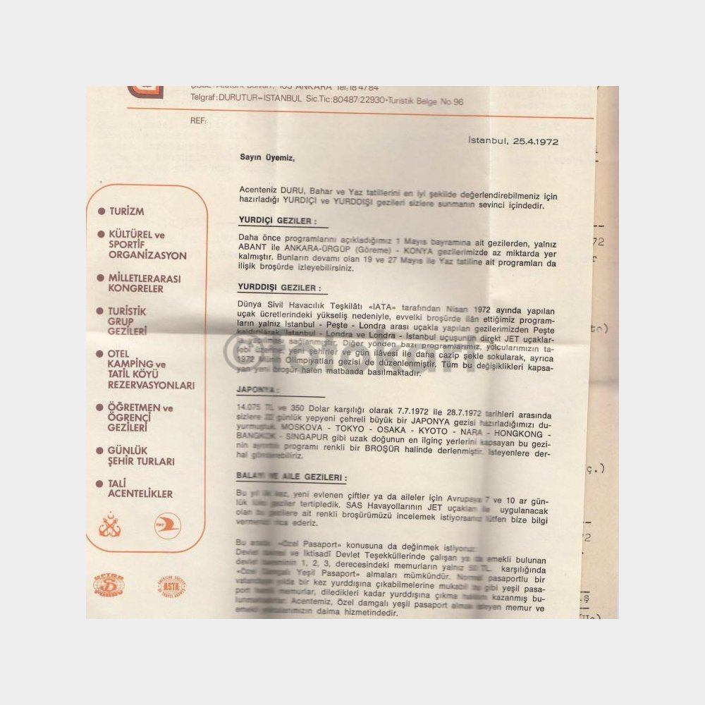1972 Duru Turizm Seyahat Acenta Bülteni