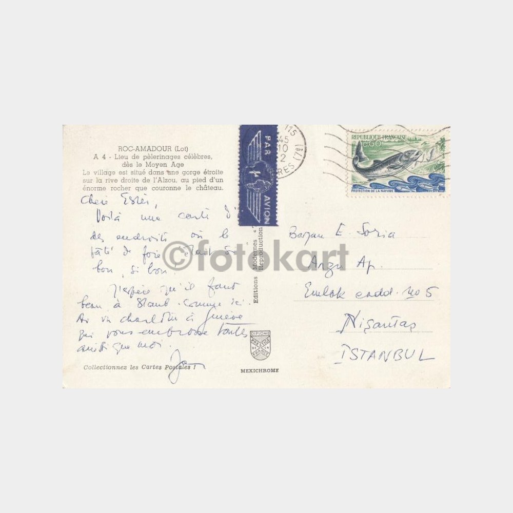 1972 Fransa Balık Pullu Konulu Kartpostal