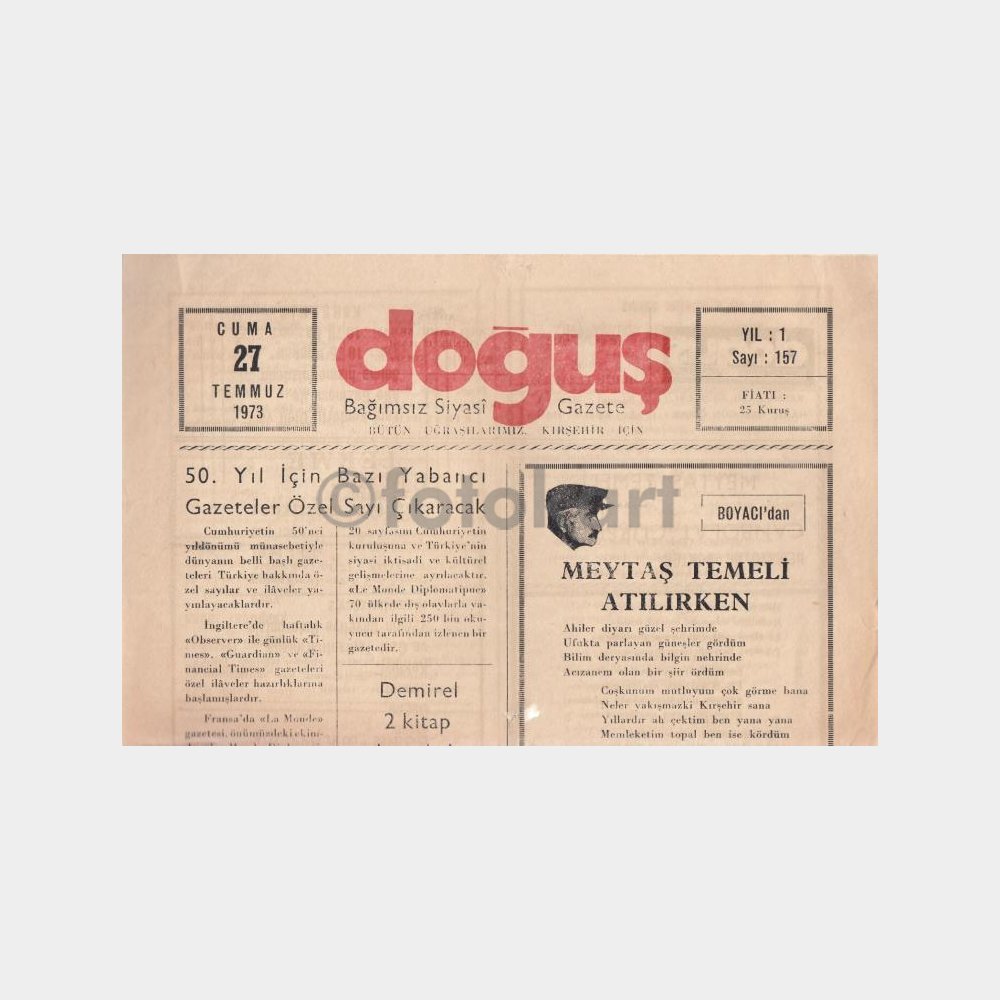 “1973 Kırşehir Doğuş Gazetesi (27 Temmuz)” için yorum yapan ilk kişi siz olun