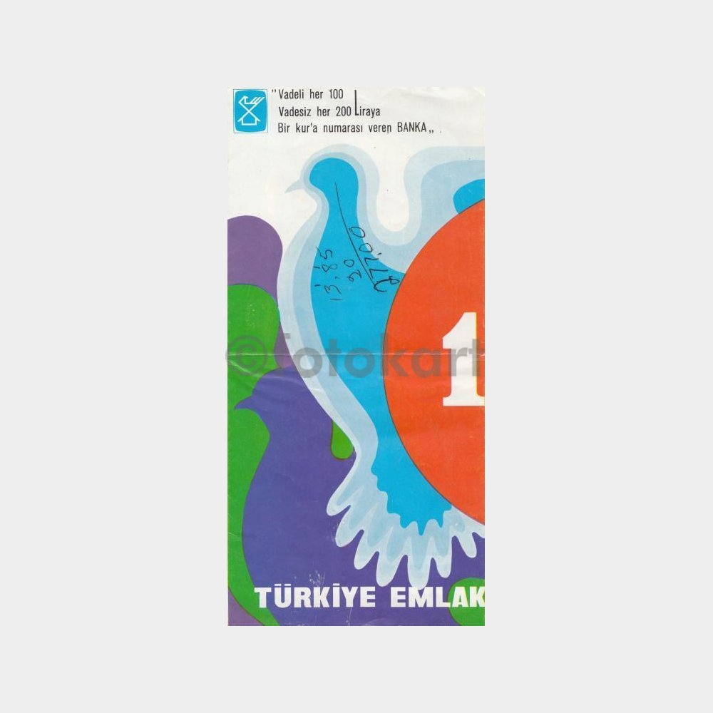 9 x 14 cm ebadında, arkası T. Emlak Kredi ikramiye çekilişi broşürü.