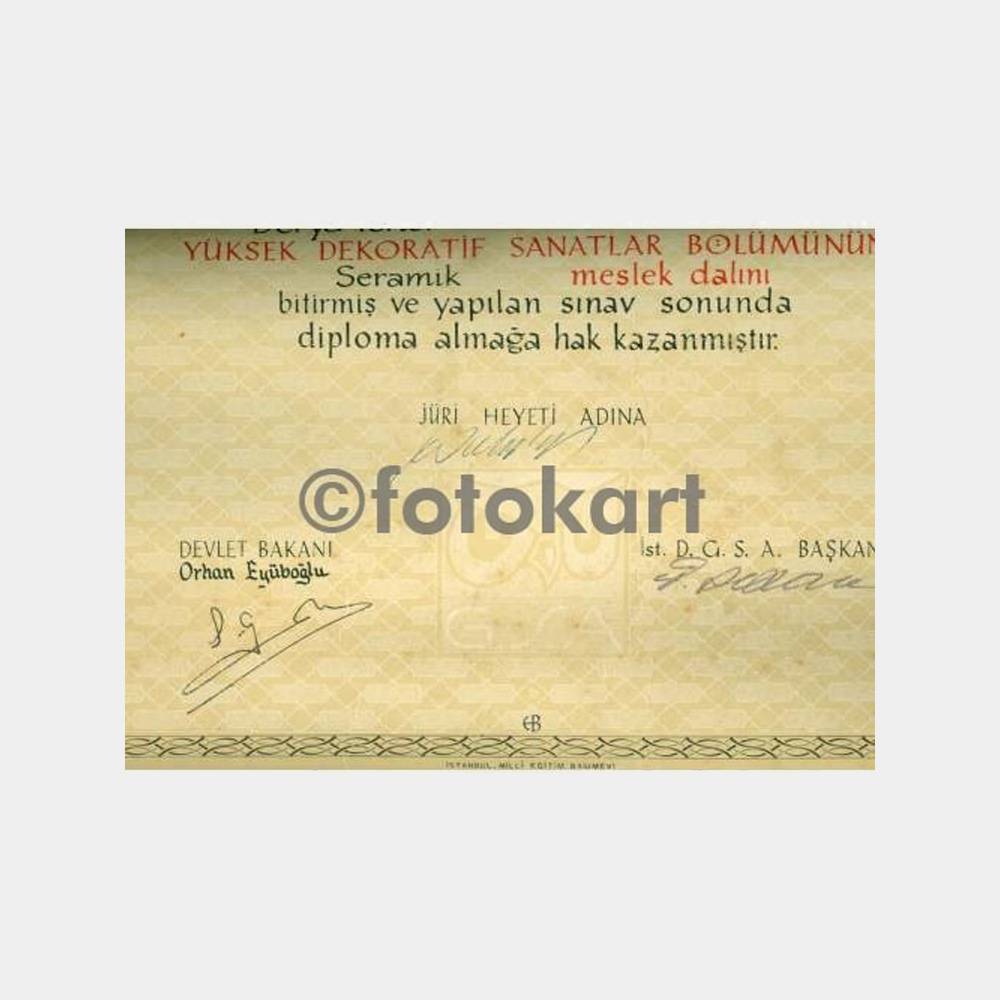 1974 Güzel Sanatlar Seramik Bölümü Diploması
