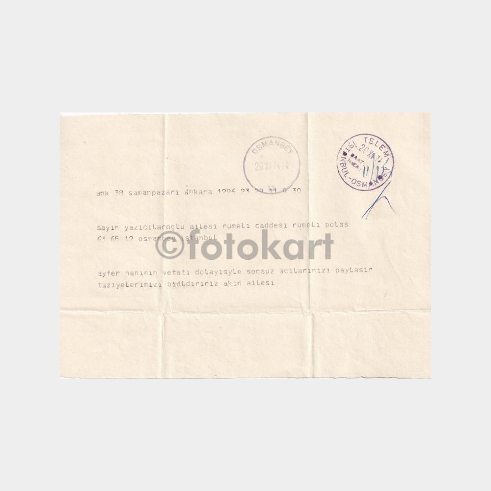 1974 İstanbul Osmanbey Telem Damgalı Telgraf Kağıdı