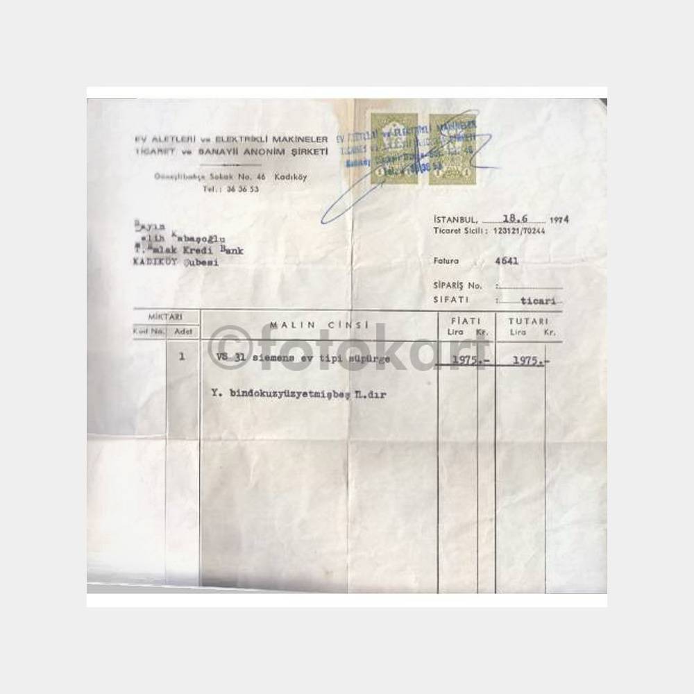 1974 Kadıköy Ev Aletleri Süpürge Faturası