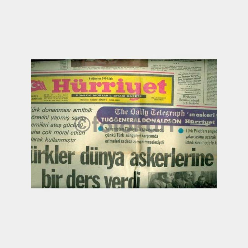 Kıbrıs harekatı ile ilgili haber ve resimler bulunan çok temiz kalmış Hürriyet Gazetesi. 6 Ağustos 1974.