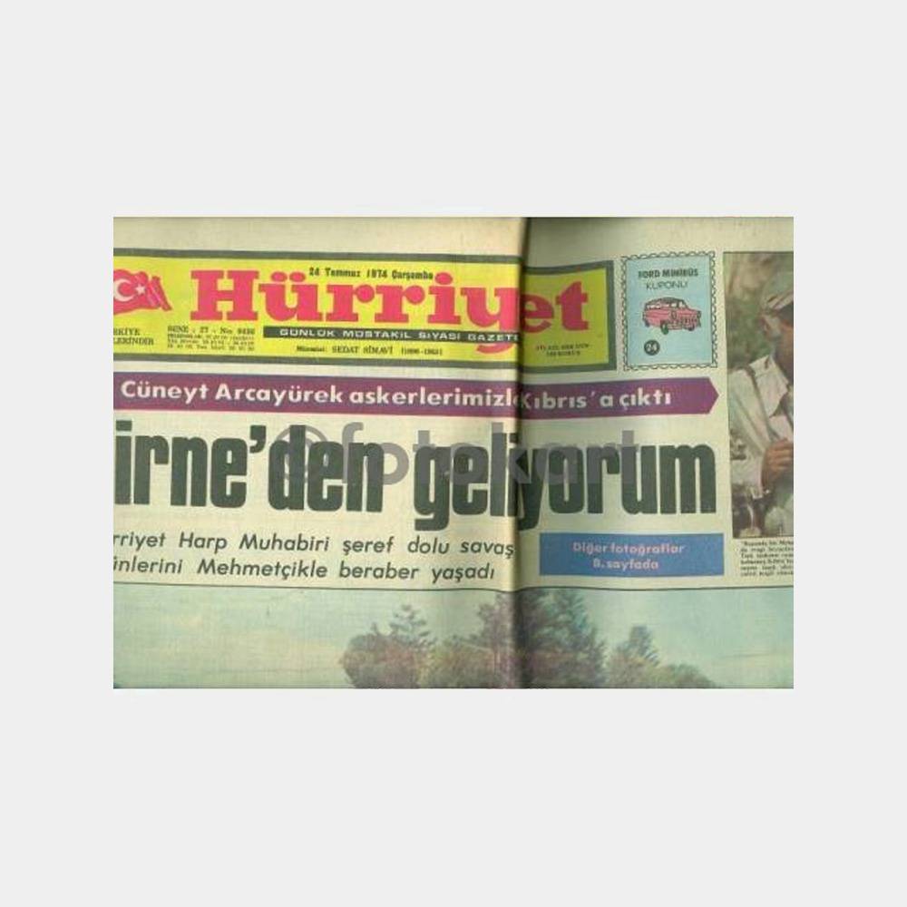 Kıbrıs Harekatı ile ilgili haber ve resimler bulunan, çok temiz kalmış Hürriyet Gazetesi.