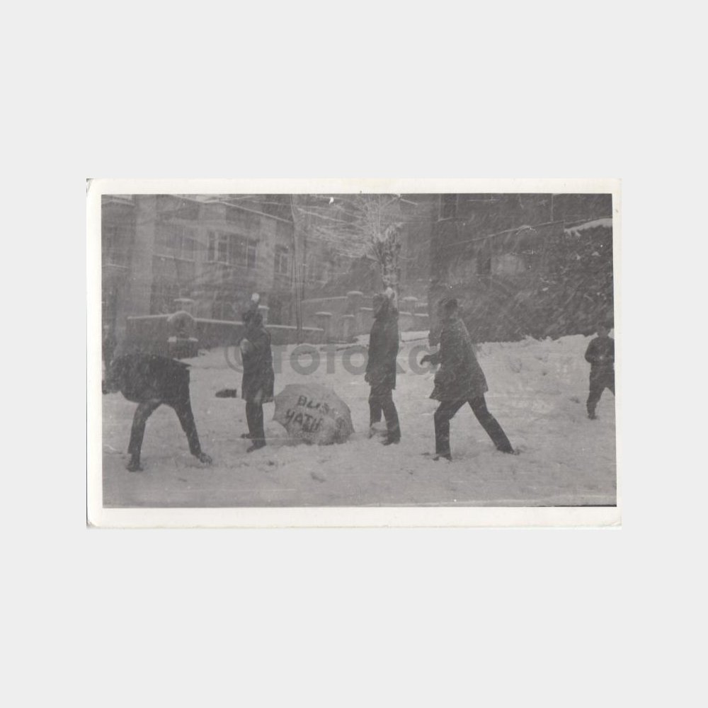 1974 Kış Kar Topu Oynayan Grup Konulu Fotoğraf