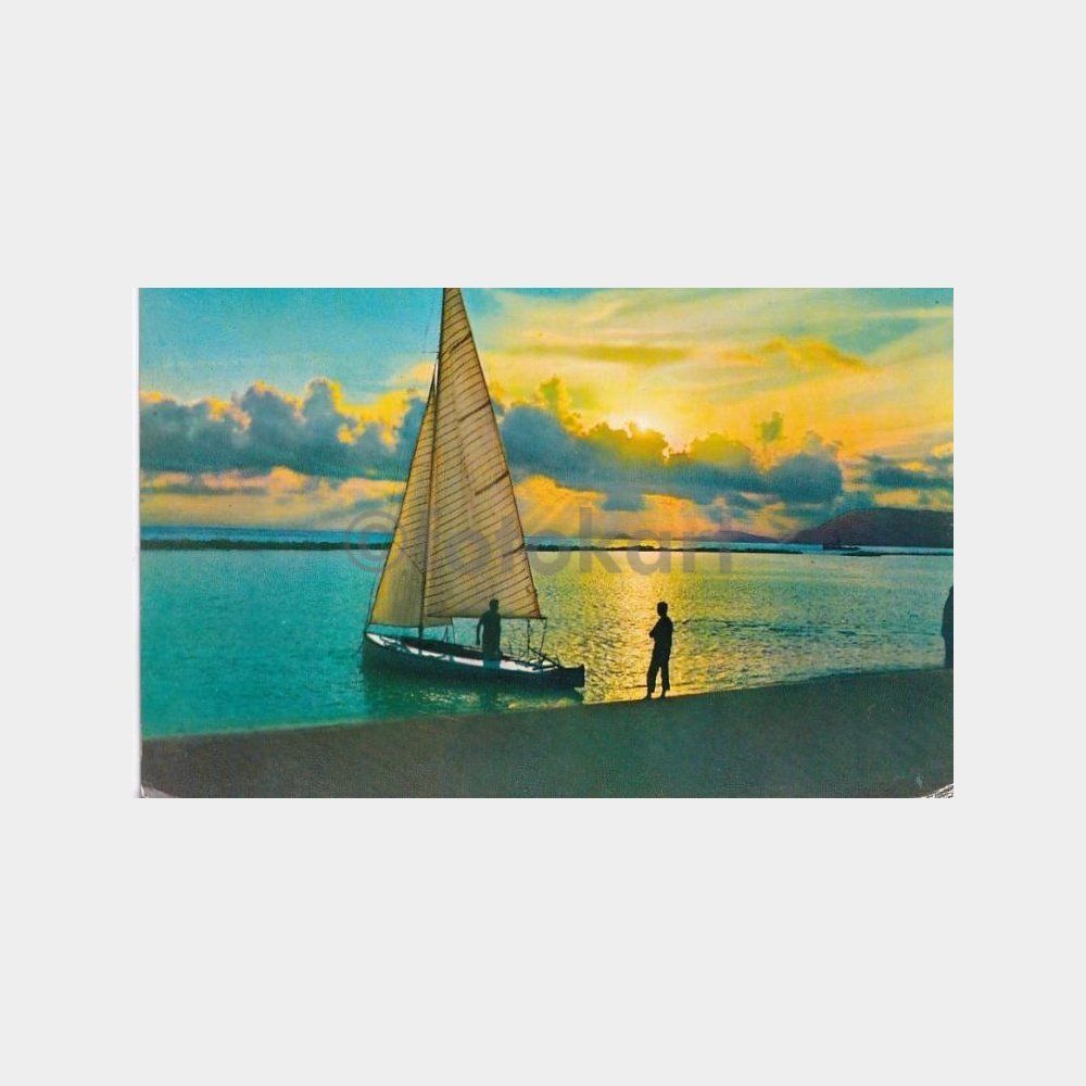 1975 Büyükada Yelkenli ve Gün Batımı Konulu Kartpostal
