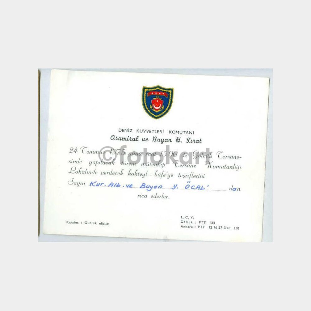 1975 Deniz Kuvvetleri Komutanı Oramiral Hilmi Fırat Davetiye