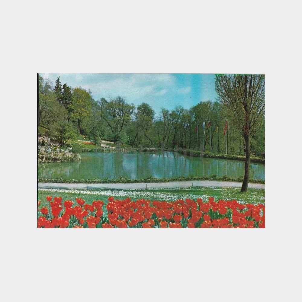 1975 İstanbul Emirgan Parkı Laleler ve Havuz Görünüşü Kartpostal