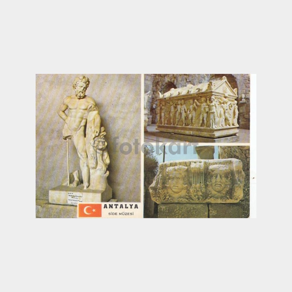 1975 Side Müzesi Herakles Heykeli Konulu Kartpostal