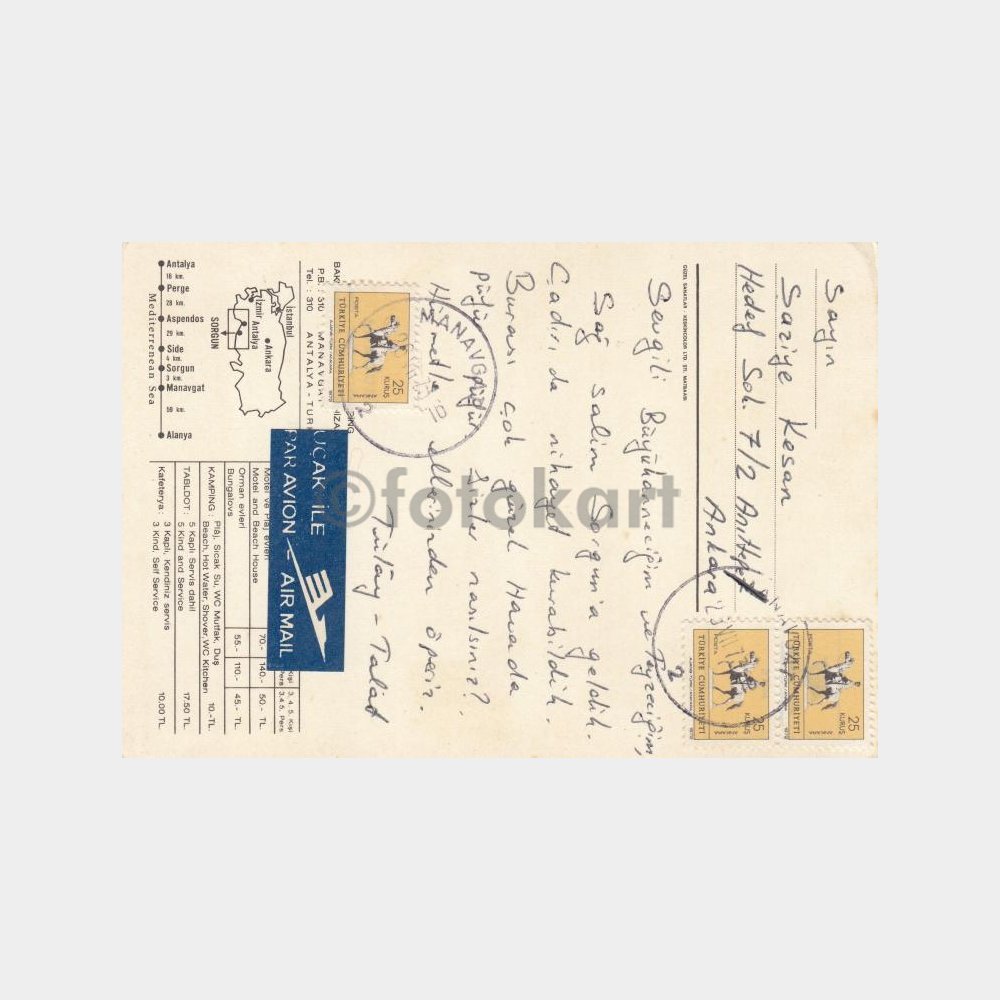 1975 Sorgun Manavgat Posta Damgalı Kartpostal