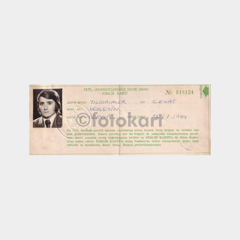 1975 Üniversite Seçme Sınavı Kimlik Kartı (Koleksiyonluk)