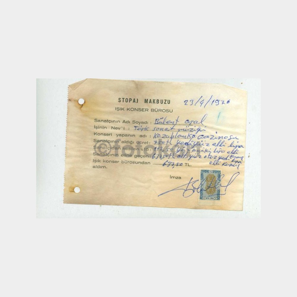 1976 Kazablanka Gazinosu -Bülent Oral- Makbuz