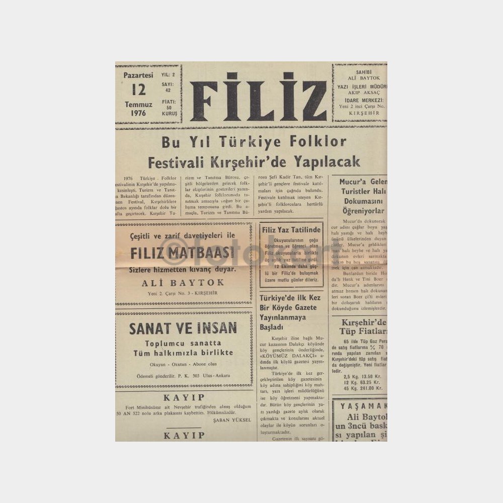“1976 Kırşehir Filiz Gazetesi (12 Temmuz)” için yorum yapan ilk kişi siz olun