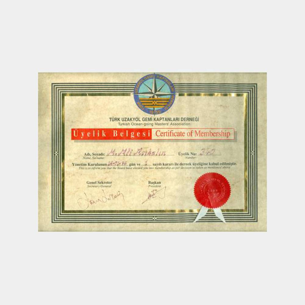 1976 Uzakyol Gemi Kaptanı Derneği Üyelik Belgesi