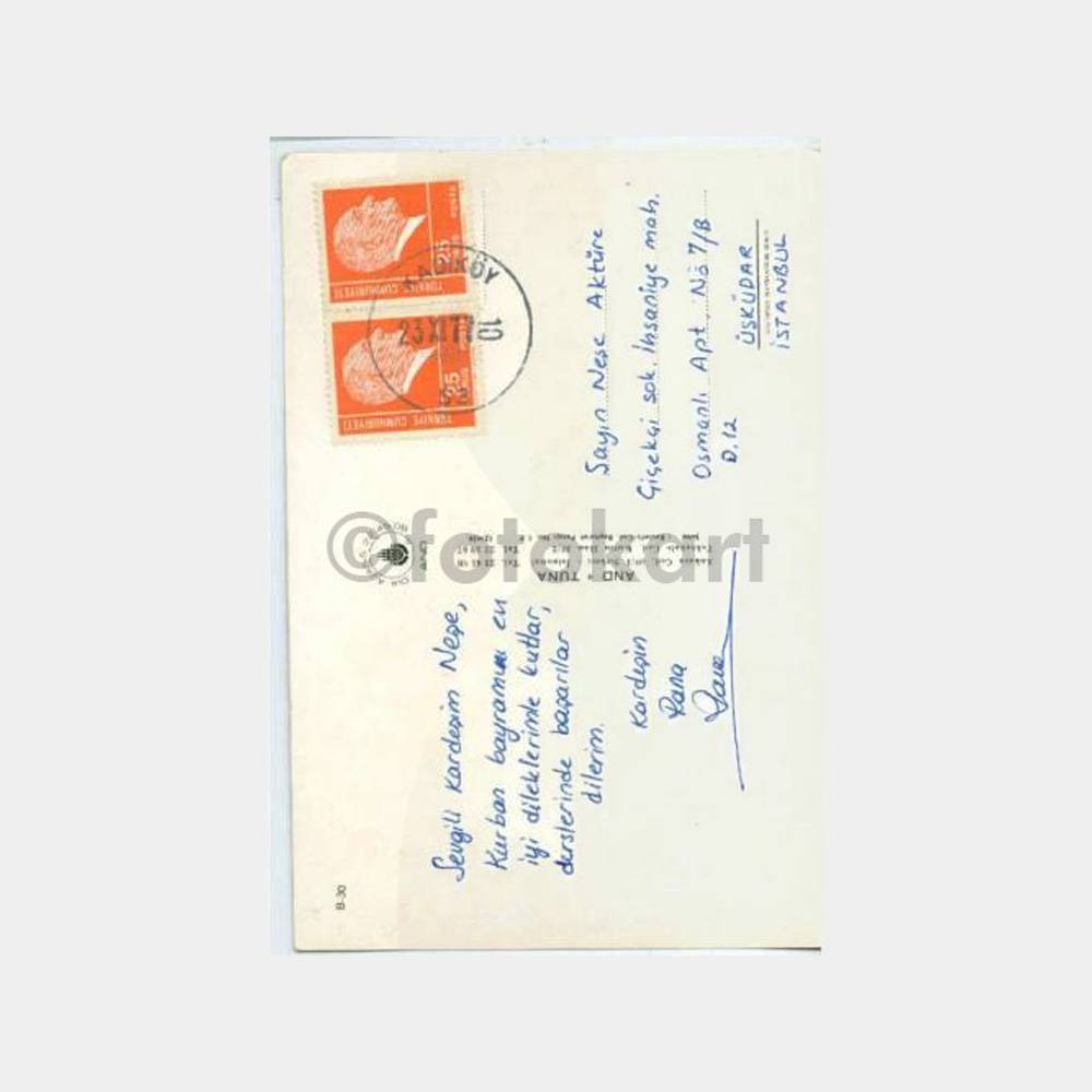 14 x 9 cm ebadında arkası 23.11.1977 Kadıköy damgalı and baskısı kart