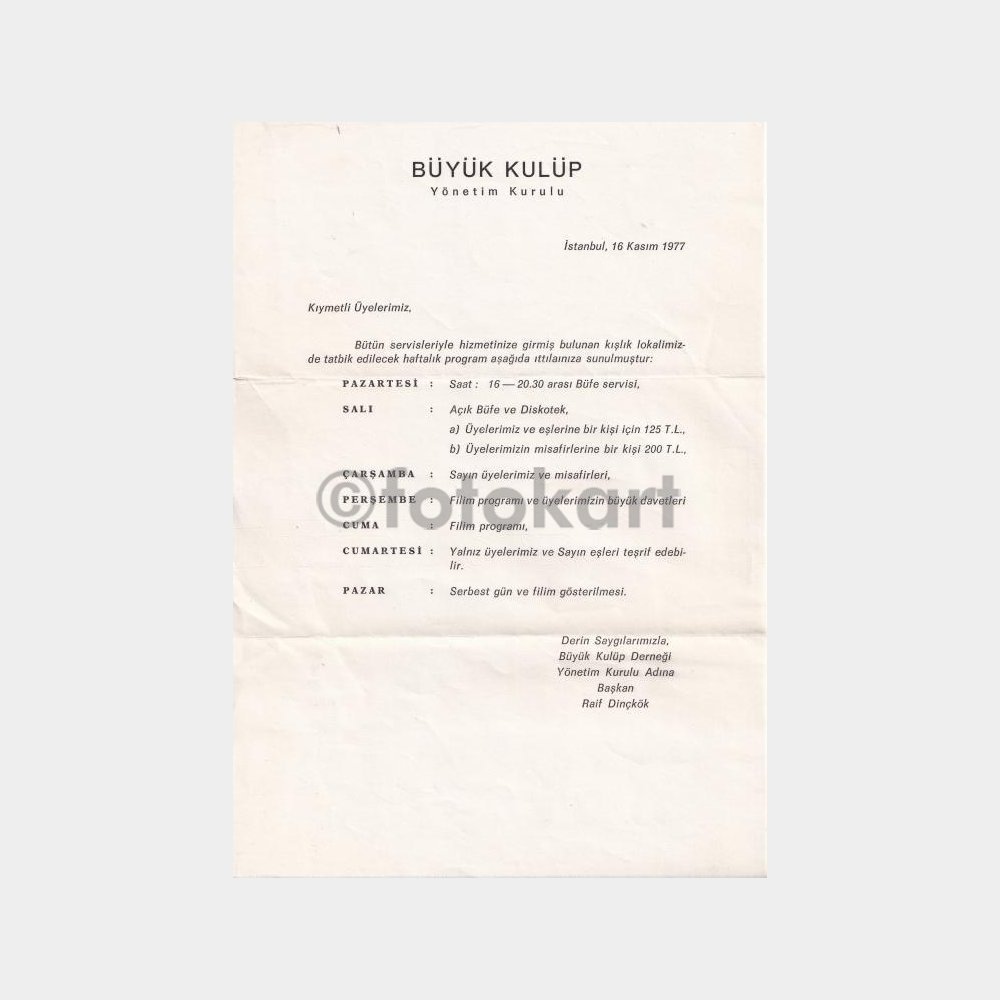 1977 Kadıköy Büyük Kulüp Etkinlik Yazısı