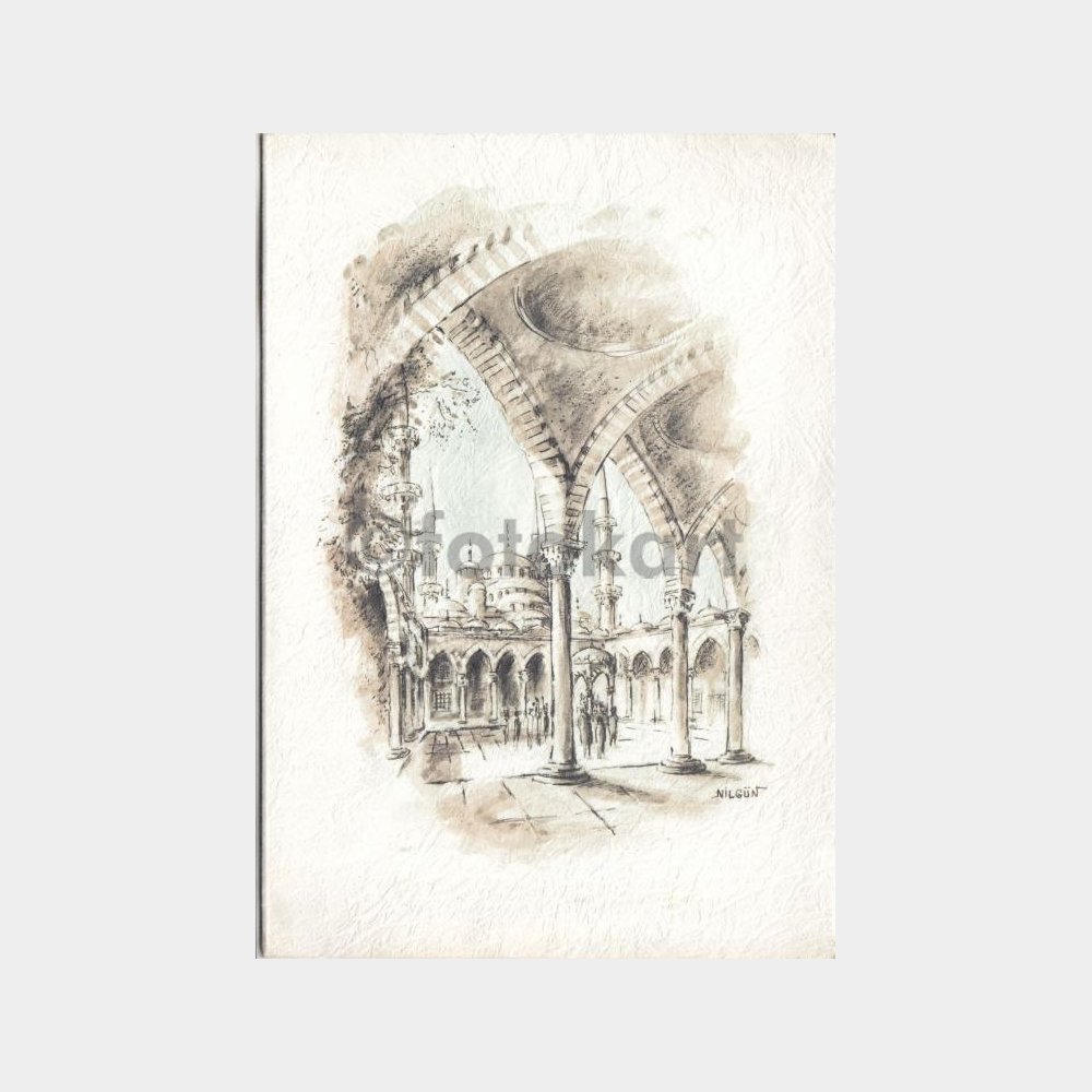 1978 Ressam Nilgün – Cami Avlusu Tablo Tebrik Kartı