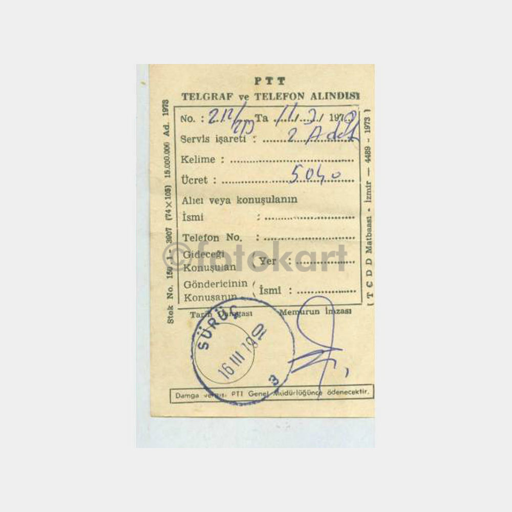 “1979 PTT Suruç Posta Damgalı 3 Adet Alındı Kağıdı” için yorum yapan ilk kişi siz olun