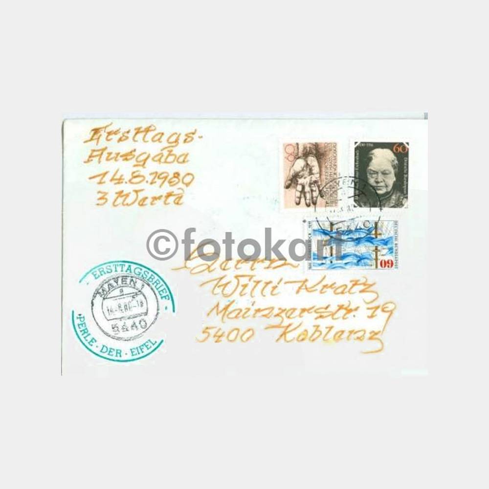 Önlü ve arkası damgalı zarf 14. 8. 1980 tarihli