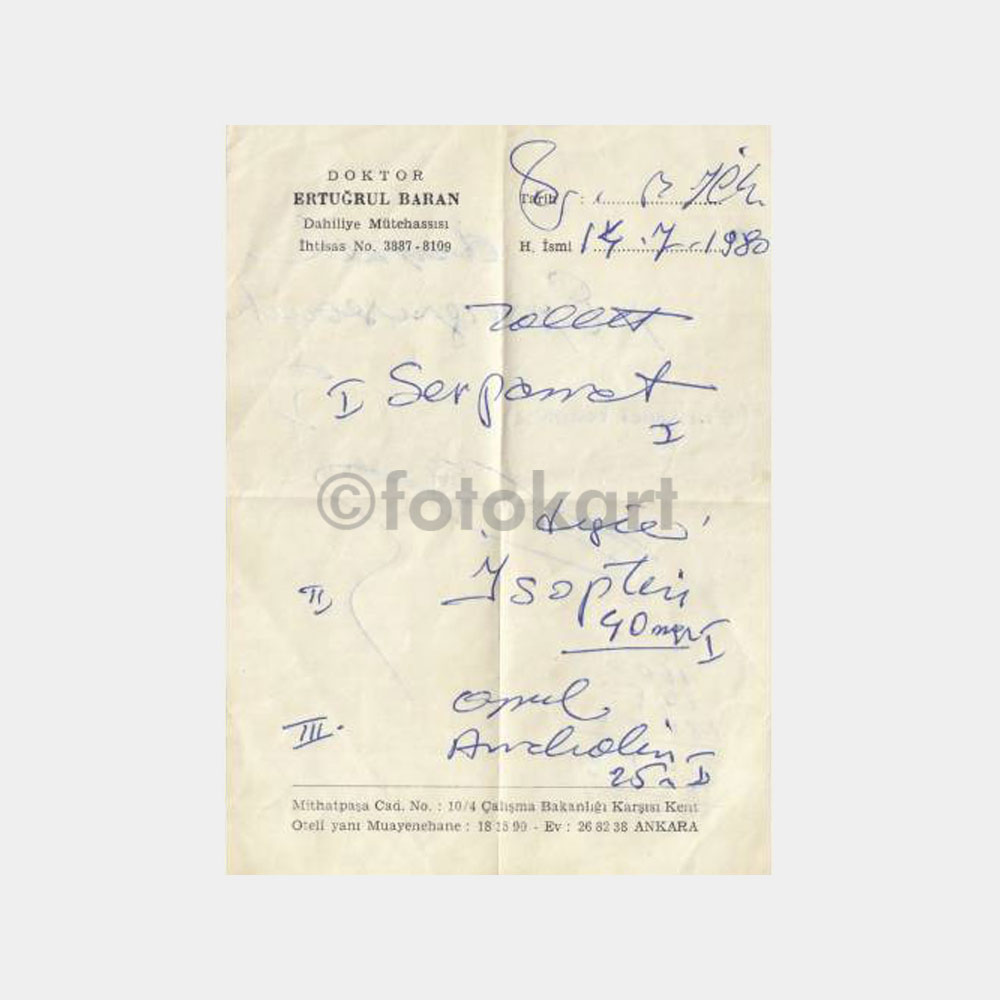 8 x 12 cm ebadında, koleksiyon amaçlı, eski reçetesi.