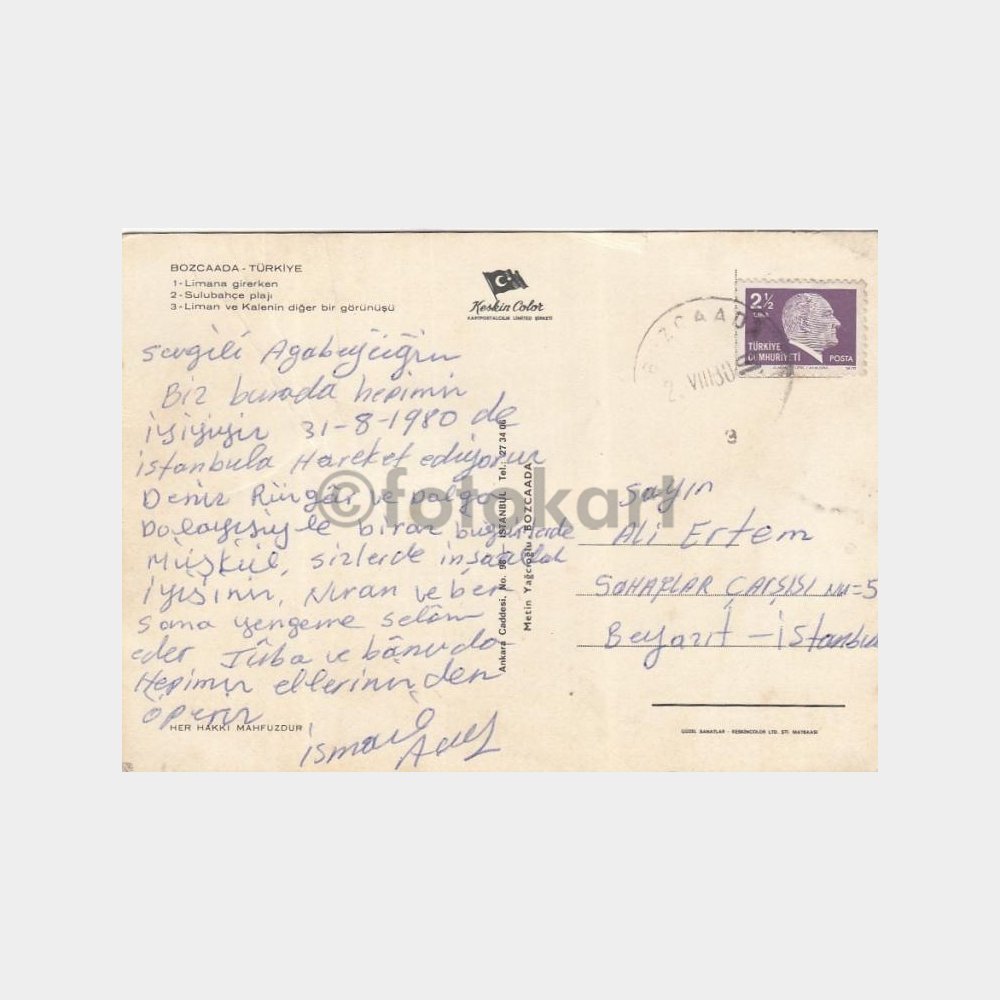 “1980 Bozcaada Damgalı 3 Görünüş Kartpostal” için yorum yapan ilk kişi siz olun