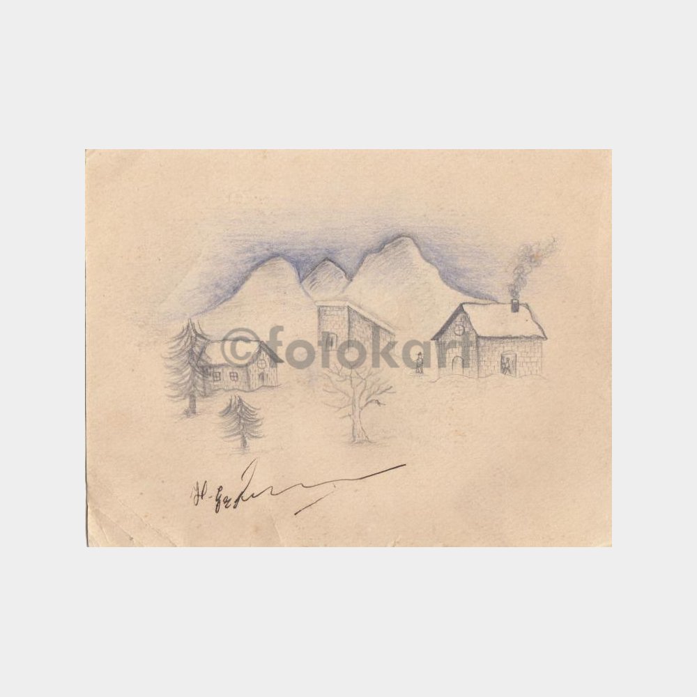 13 x 17 cm, çok temiz. Aynı kağıt önlü arkalı çalışması.