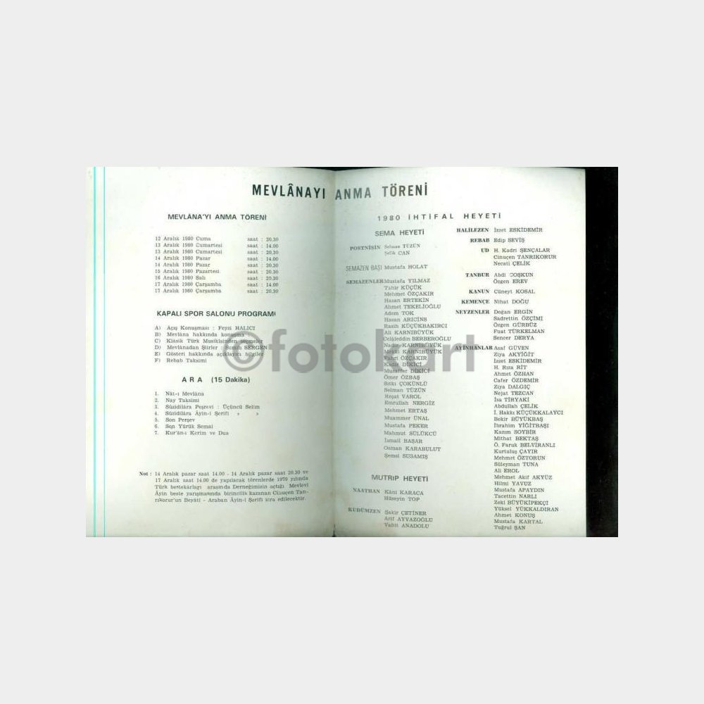 1980 Mevlana’yı Anma Töreni Programı
