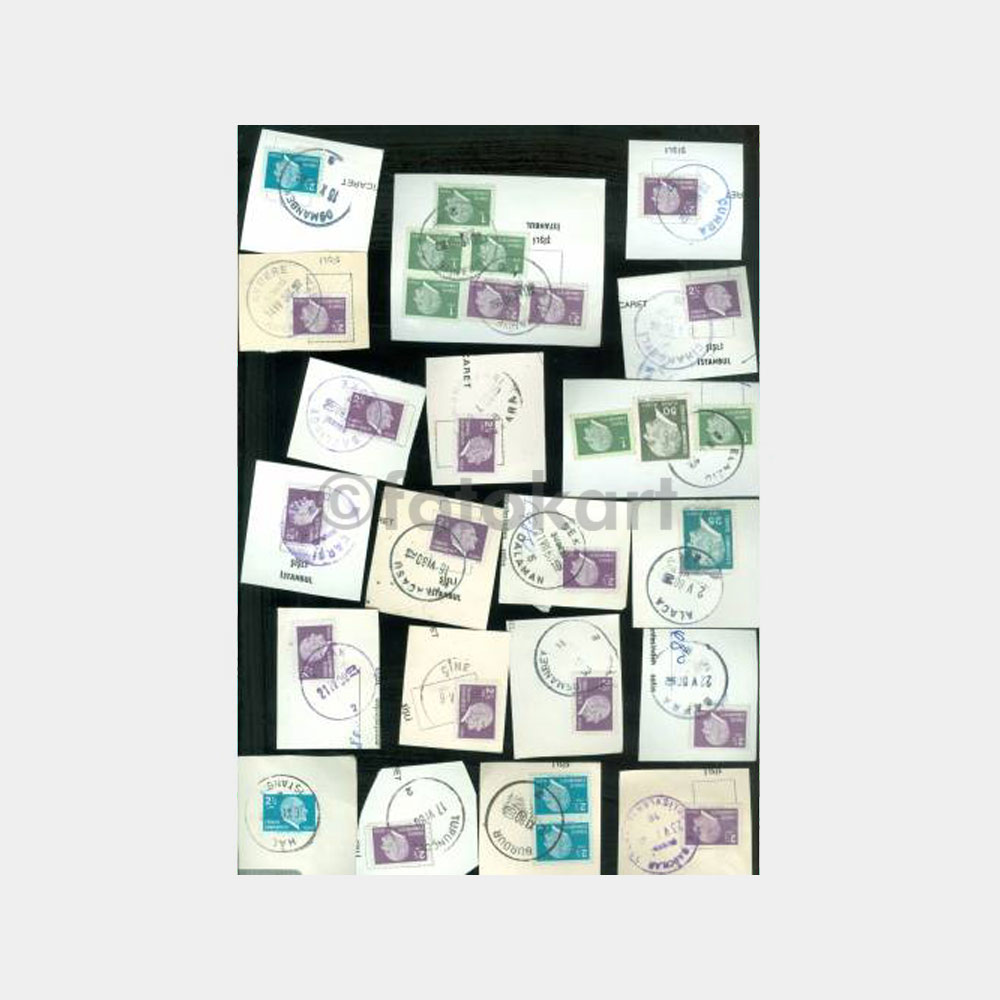 Postadan geçmiş kartlardan kesilmek suretiyle çok çeşitli posta şubelerine ait posta damgaları 320 adet, 1980 yılına ait