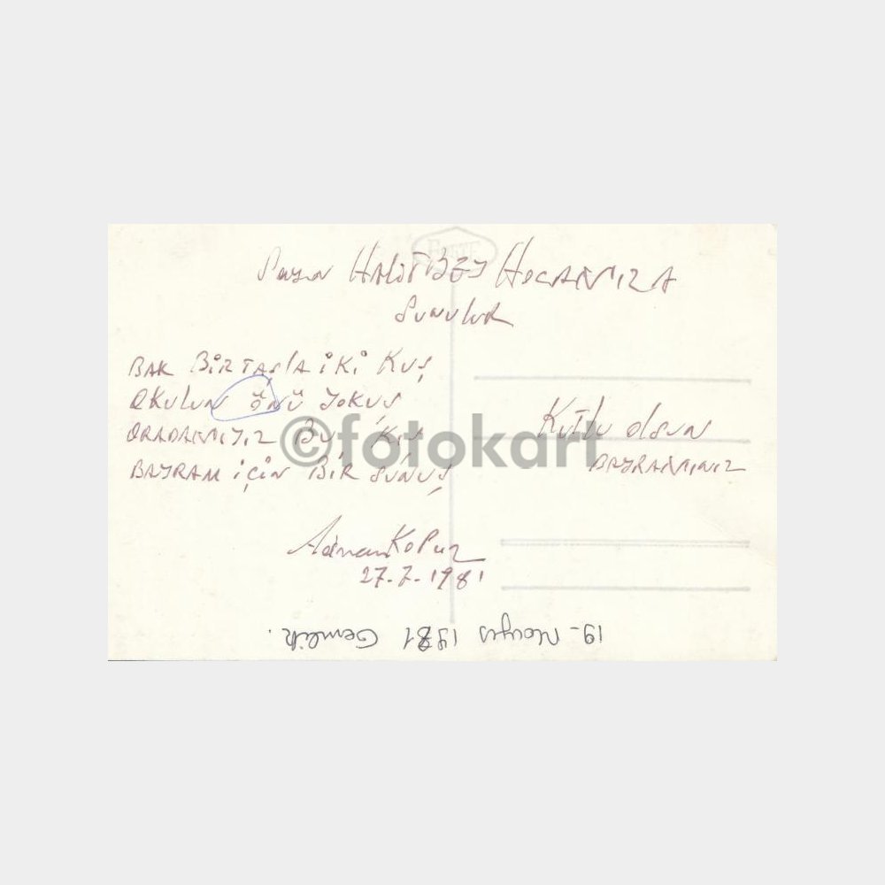 9 x 14 cm, arkası yazılı. Albümden çıkma fotoğraf.