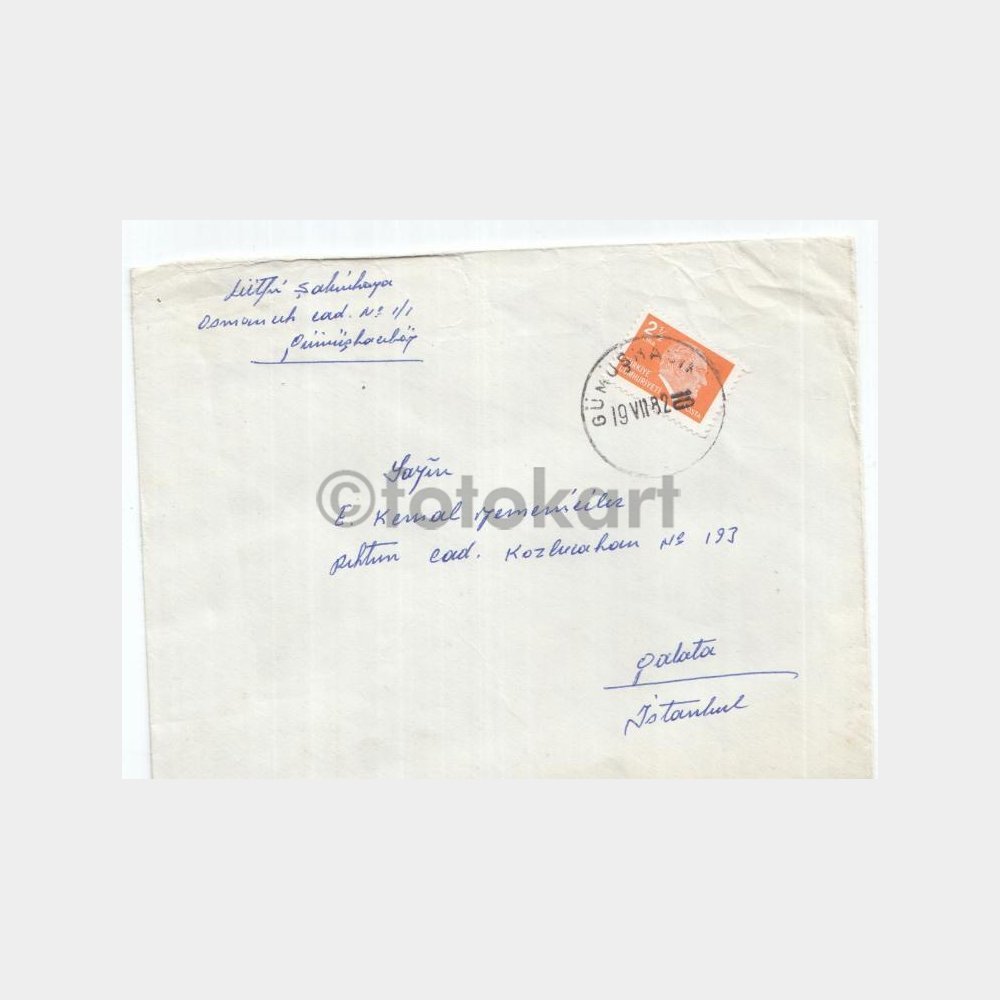 8 x 12 cm ebadında, koleksiyon amaçlı eski mektup zarfı. Kondüsyon iyi.