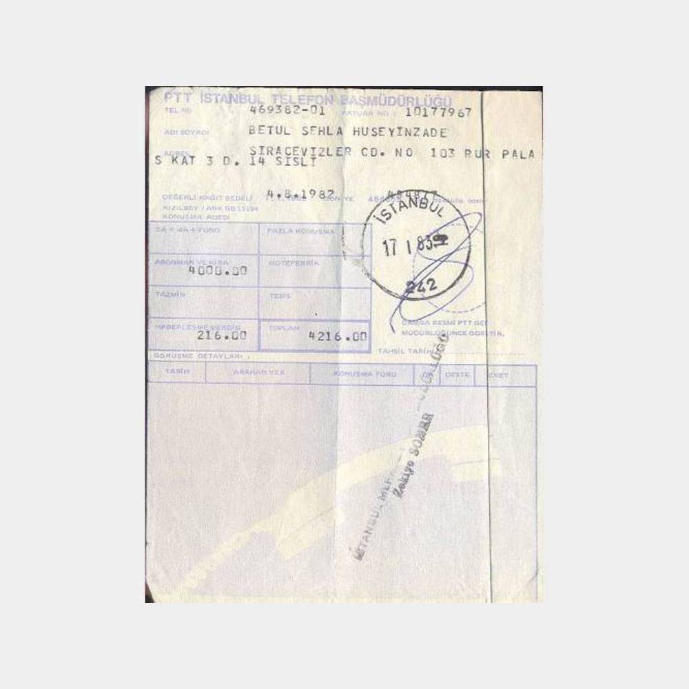 17. 01. 1983 tarihli telefon makbuzu