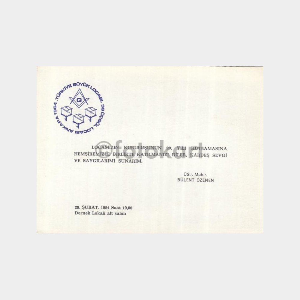 1984 Mason Konulu Tebrik Kartı (Üçgül L)