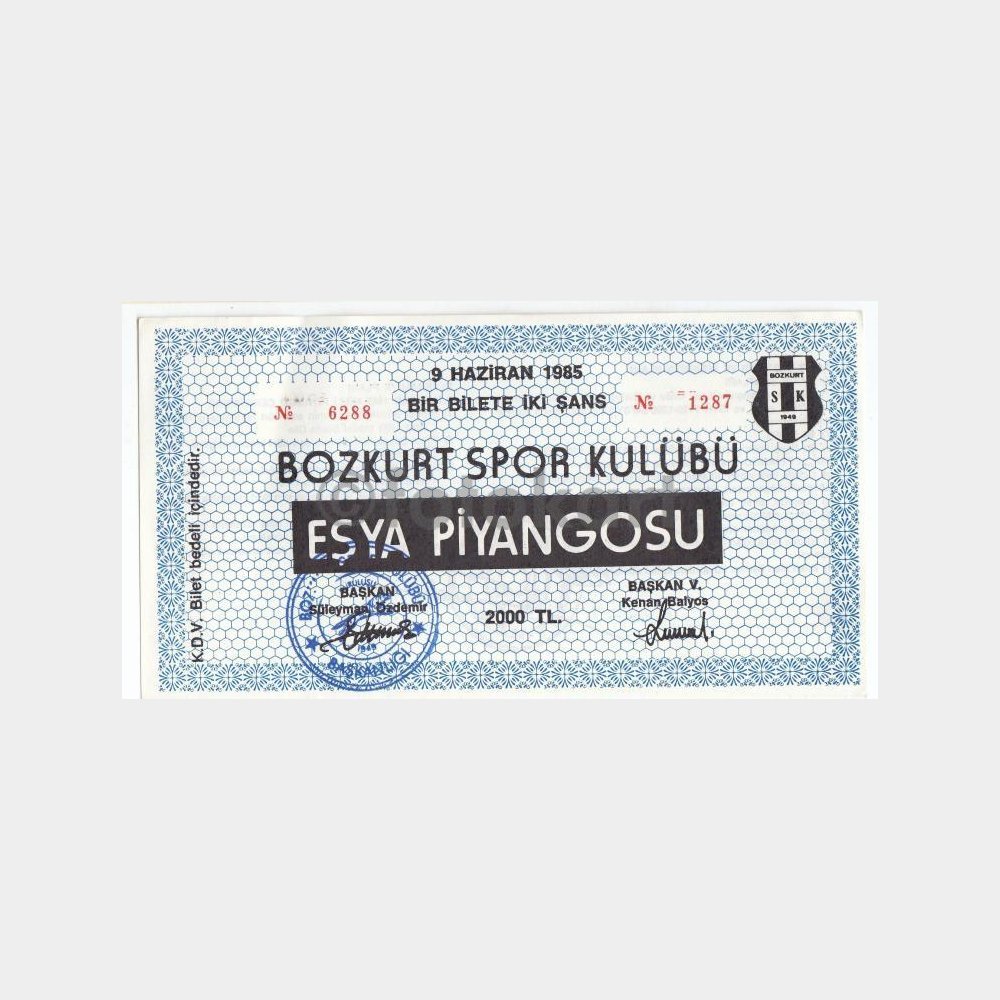 1985 Bozkurt Spor Kulübü Fatih – Eşya Piyangosu Bileti