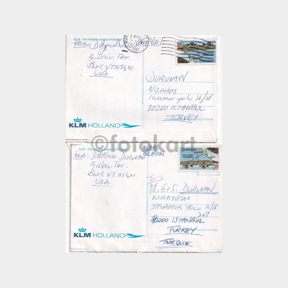 1985 Hollanda KLM Hava Yolları Uçak Mektubu (Yazılı, 2 Adet)