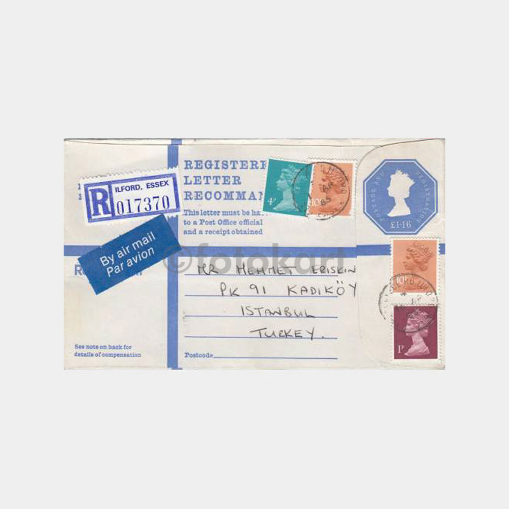 1985 İngiltere Essex Posta Damgalı Taahhütlü Zarf