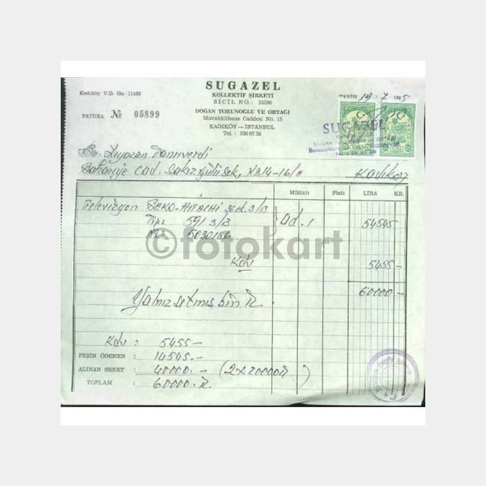 “1985 Kadıköy Sugazel Şti. Televizyon Faturası” için yorum yapan ilk kişi siz olun