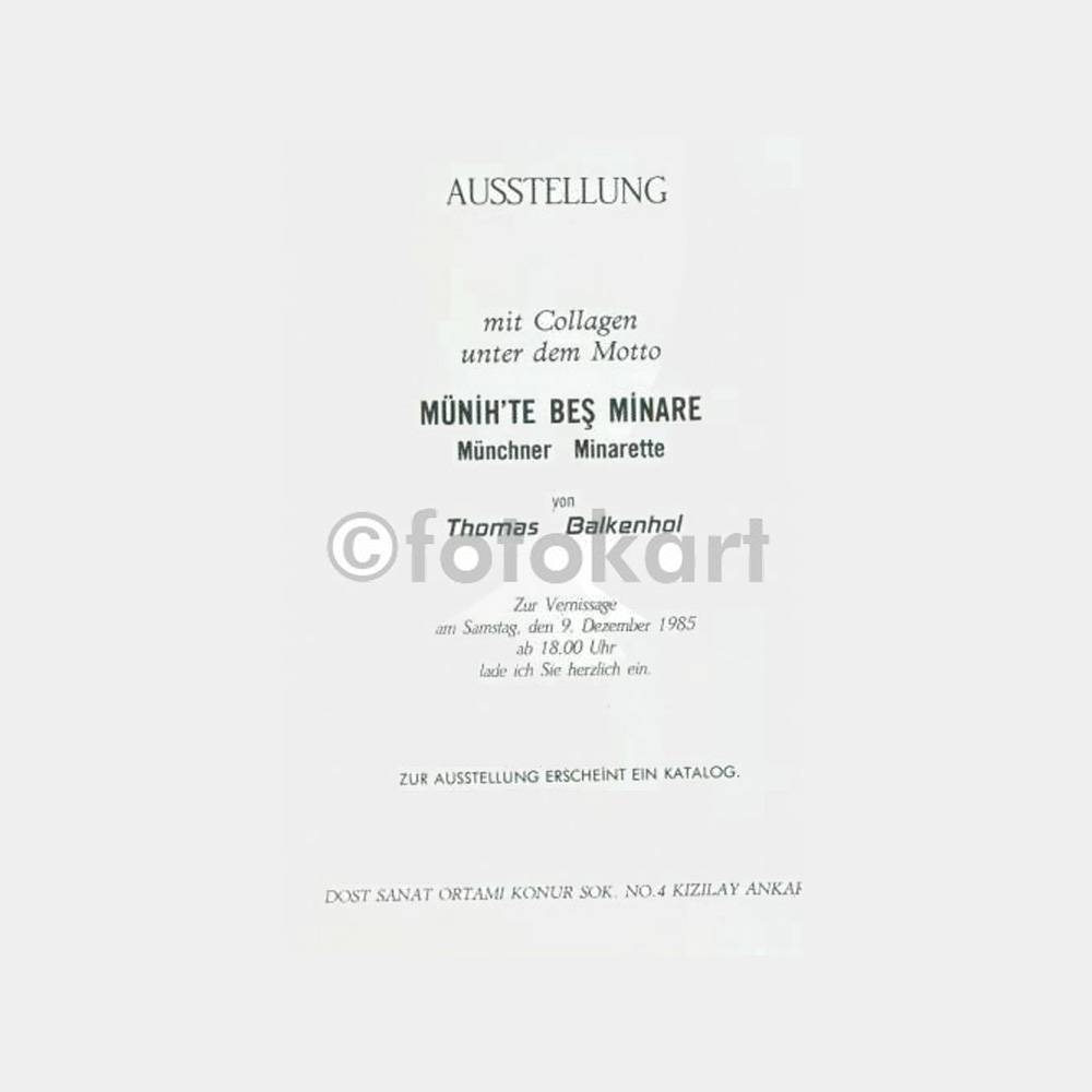 “1985 Münih’te Beş Minare Kolaj Sergi Davetiyesi” için yorum yapan ilk kişi siz olun