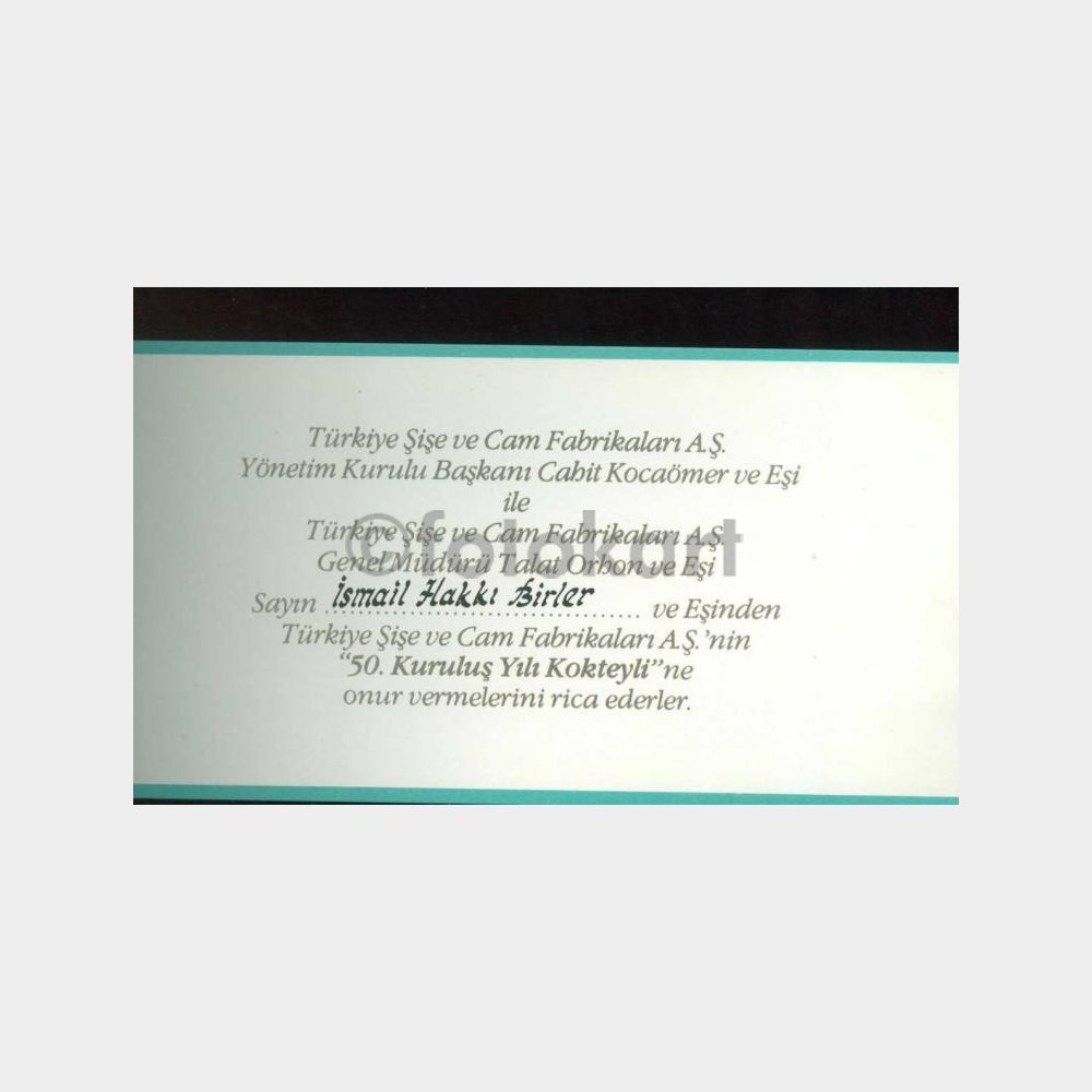 1985 T. Şişe Cam Fabrikası 50. Yıl Kuruluş Davetiyesi